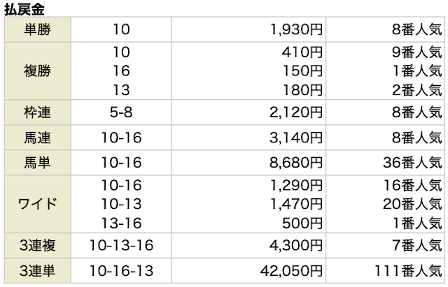 160,000円 | 3連単 | 10,000円 |