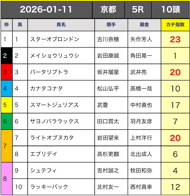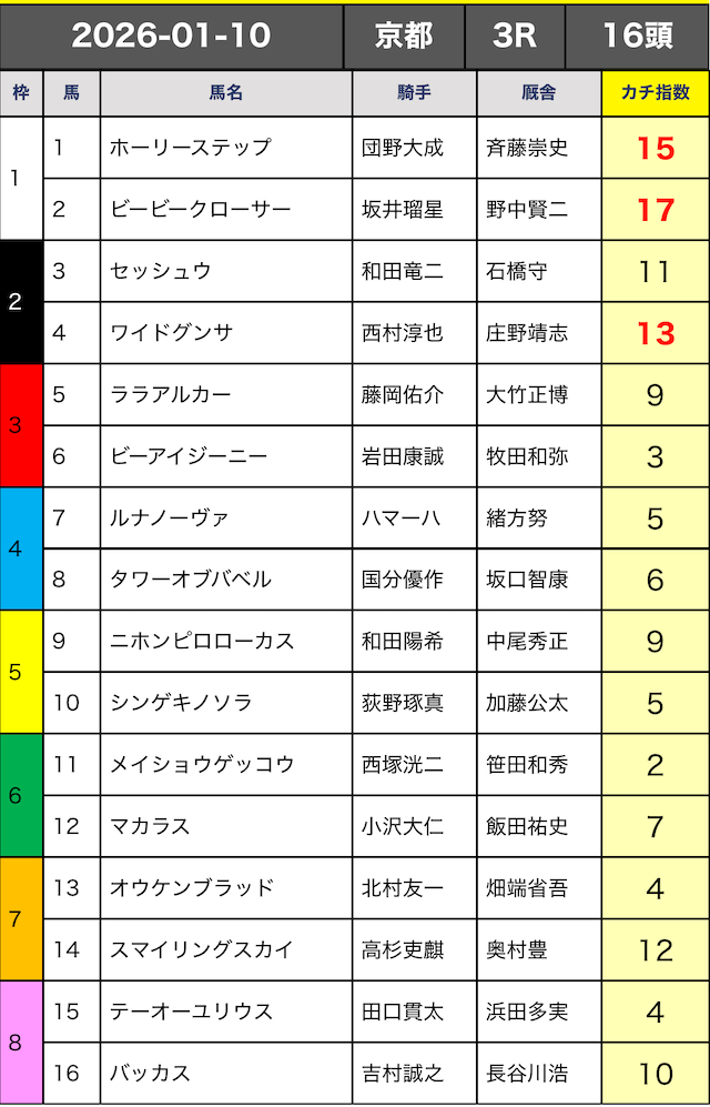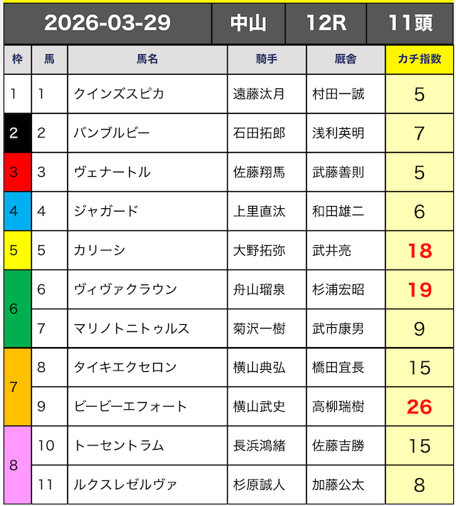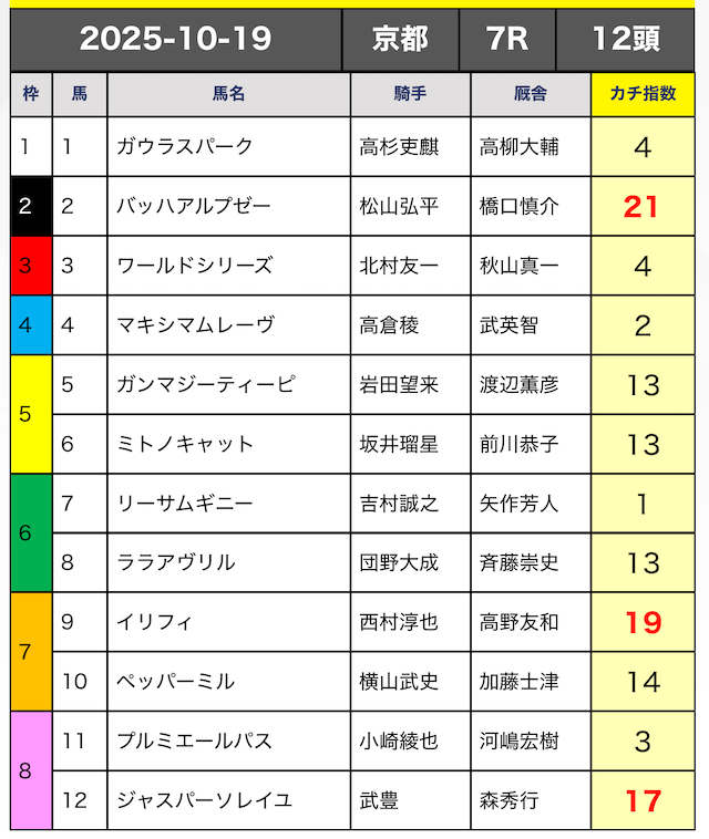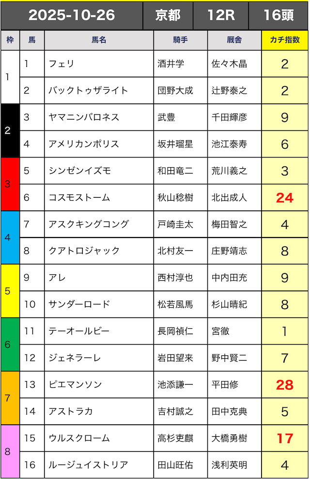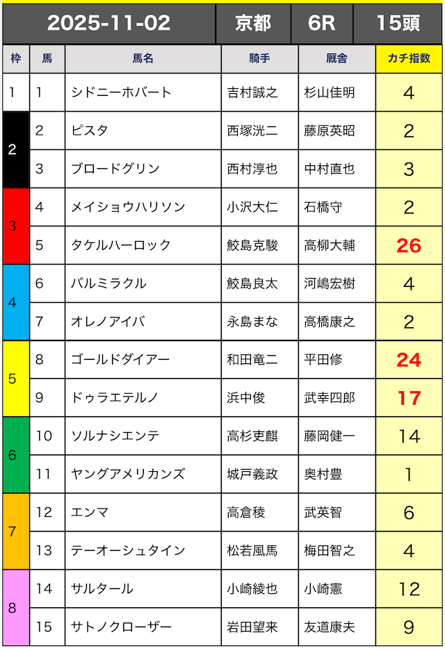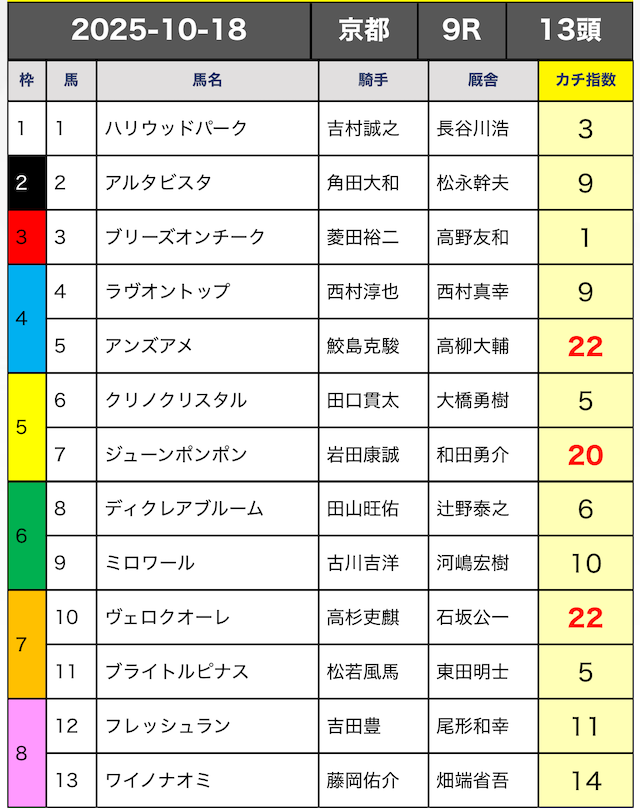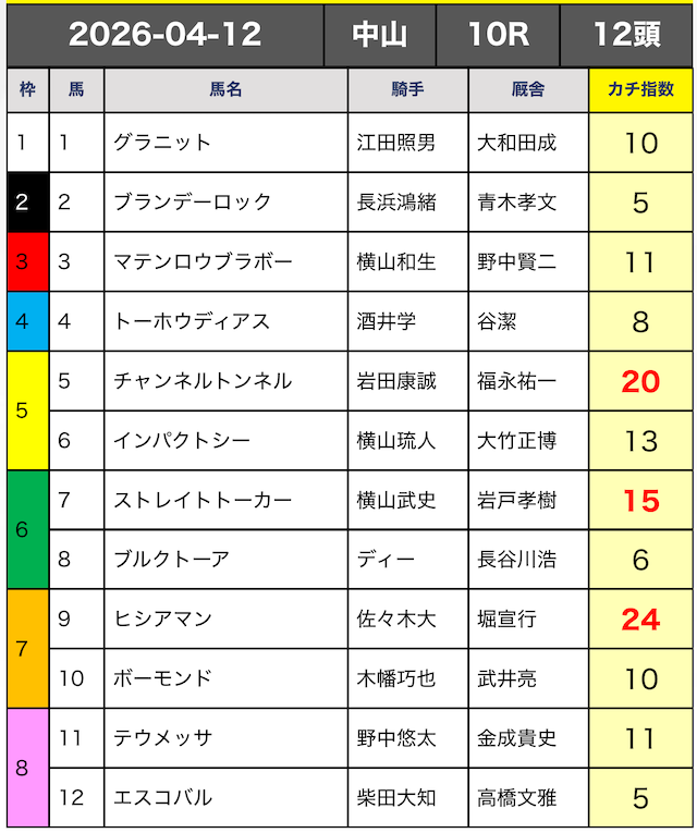 今回はカチ指数の高い5頭の3連複ボックスで勝負していきます。