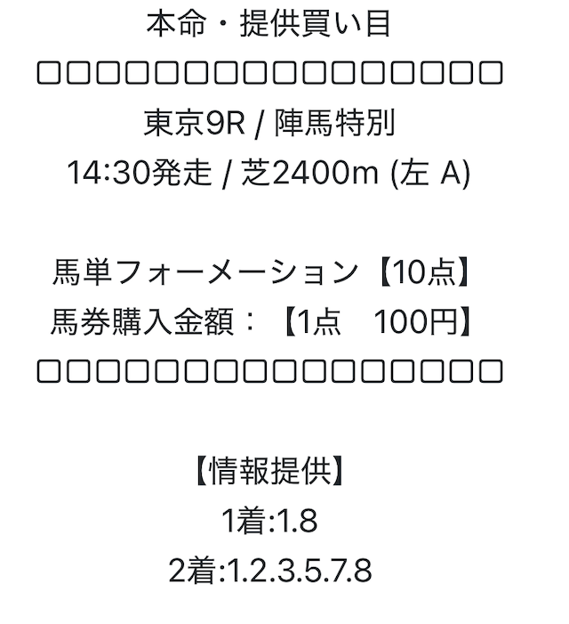 推奨馬券代 | 1点100円 |