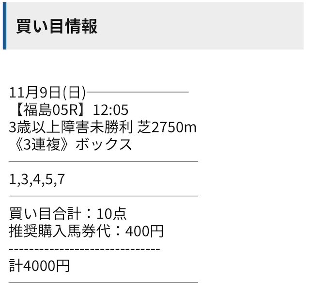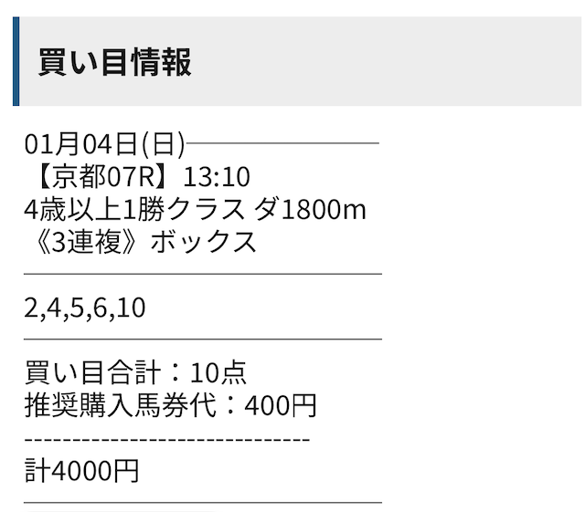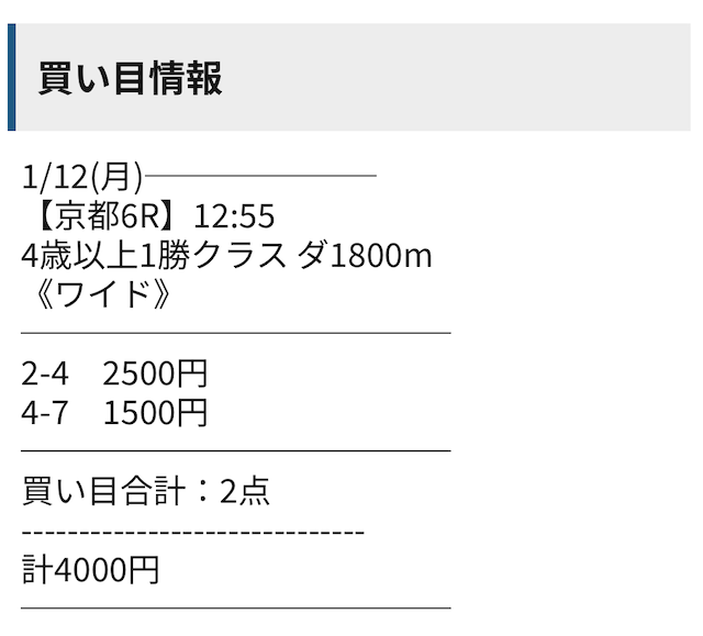 本当にワイドの予想?ってなるくらいじゃんじゃん稼ぐことができています。買い目点数が2点なので無駄がない点もとても気に入ってます!