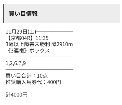 | 予想の確認方法 | 会員ページの[買い目公開] |