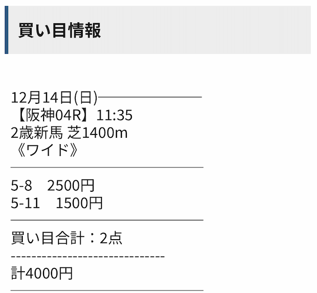 初戦と同じくワイド2点の買い目を公開したシンケイバ。