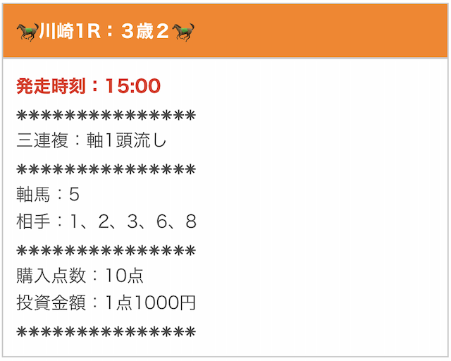 続いて、ケイバ一番星の有料予想に参加していきます。