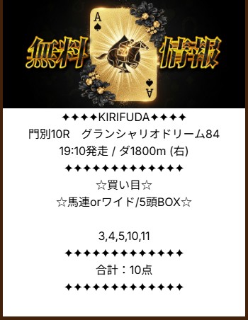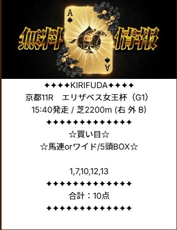 ワイドと馬連の予想で、いずれも素晴らしい成績を残したキリフダ。