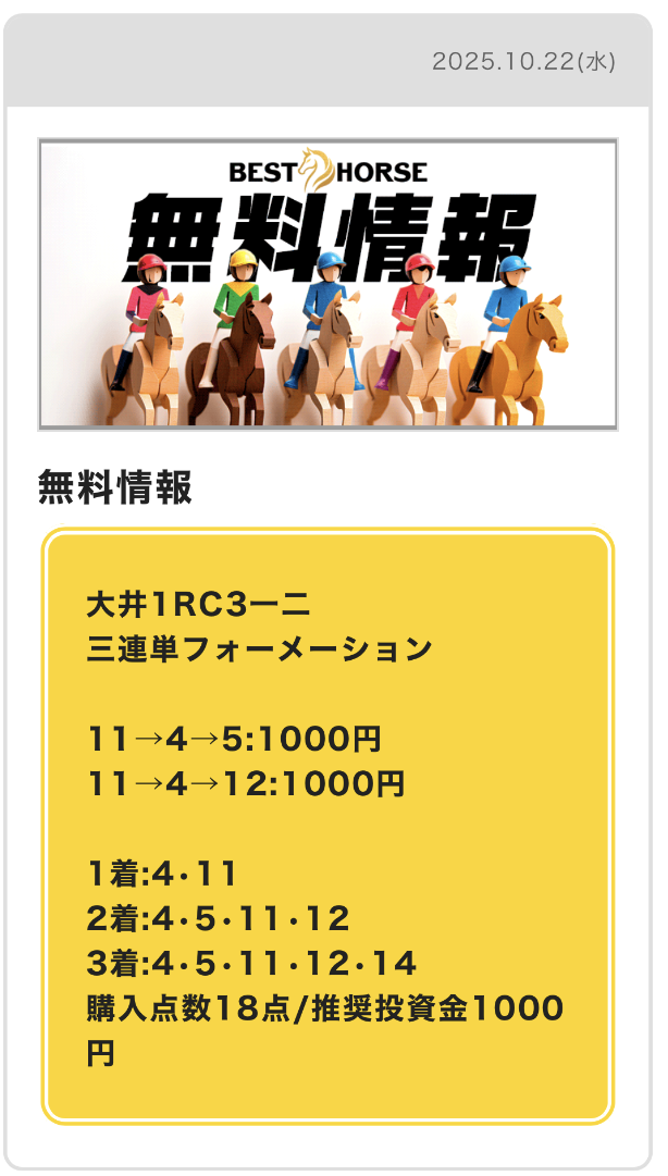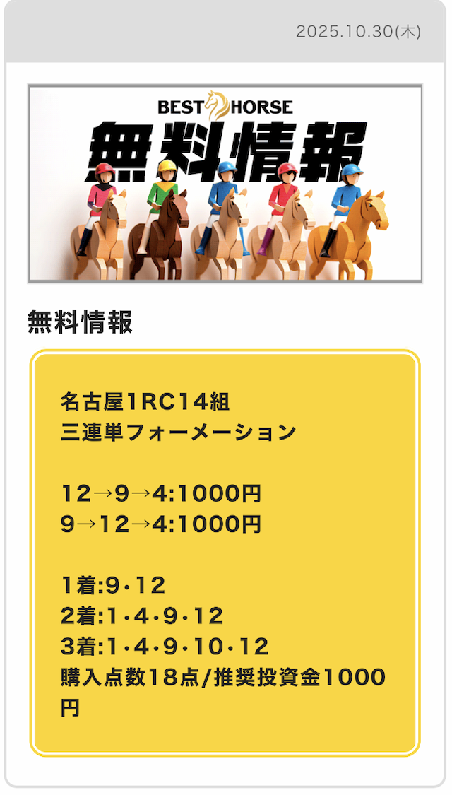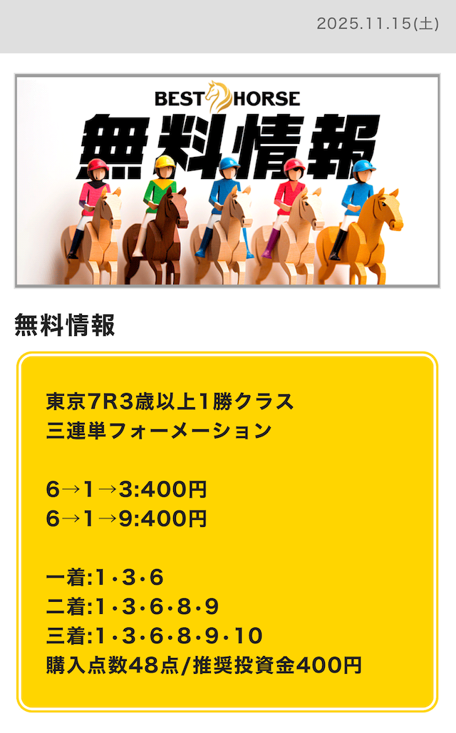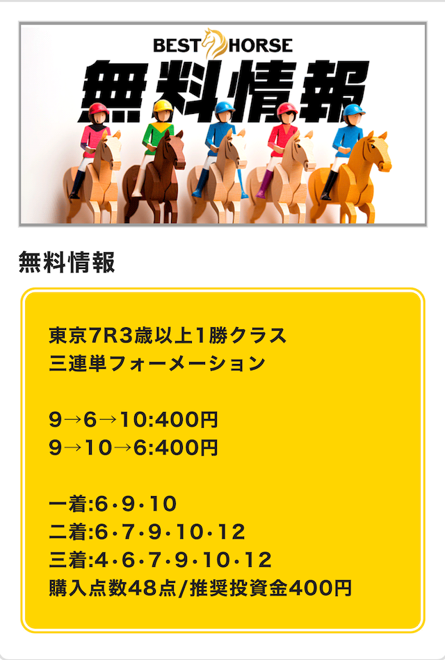 ※タップするとベストホースの無料予想の詳細を確認できます。