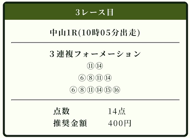 3連複フォーメーション計28点の買い目が公開されました。