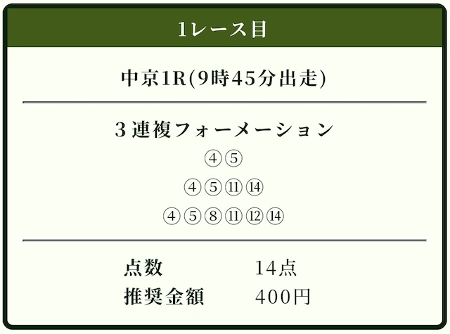 | 馬券代1点 | 1,000円 |