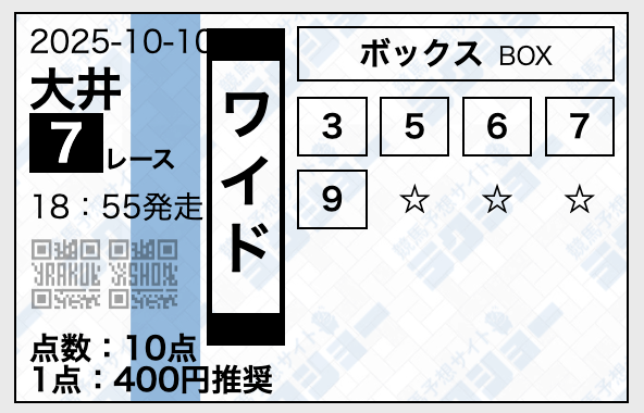 公開されたのは3連複5頭ボックス計10点の買い目。