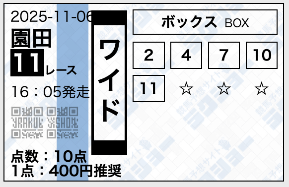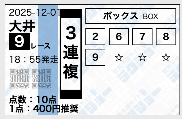 | 予想の確認方法 | 会員ページの[買い目公開] |