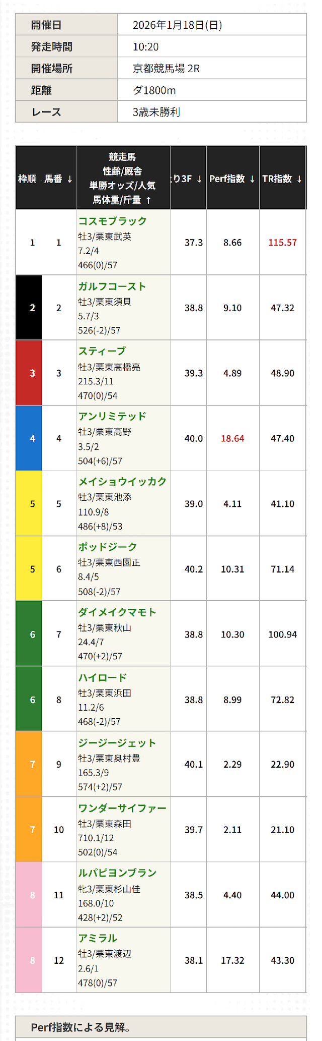 というように無料予想で買い目が公開されない点に不満を感じる方もいるようですが、そんな方は競馬ビビットと同様にまずはPerf指数・TR指数それぞれで指数上位3頭をワイドBOX買いしてみると良いでしょう。