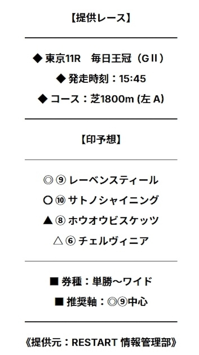 公開時間(中央) | レース前日22時~当日10時予定 |