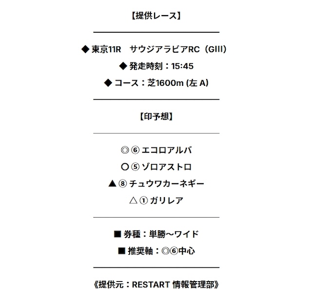 無料予想・有料予想・口コミ、どの検証でも素晴らしい成績を収めているリスタート。
