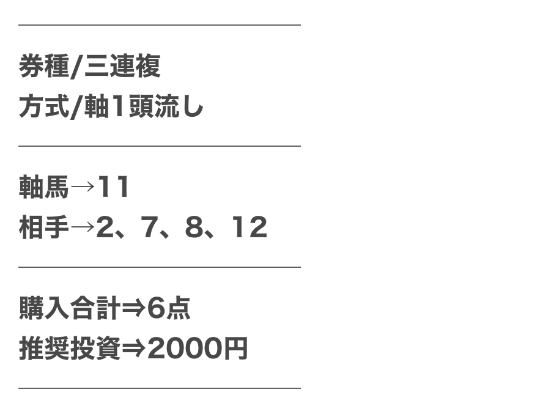 競馬センスから提供された買い目と、出走する馬の詳細をご覧ください。