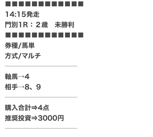 | 馬券代1点 | 1,000円 |