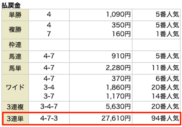 | 券種 | 3連単 |