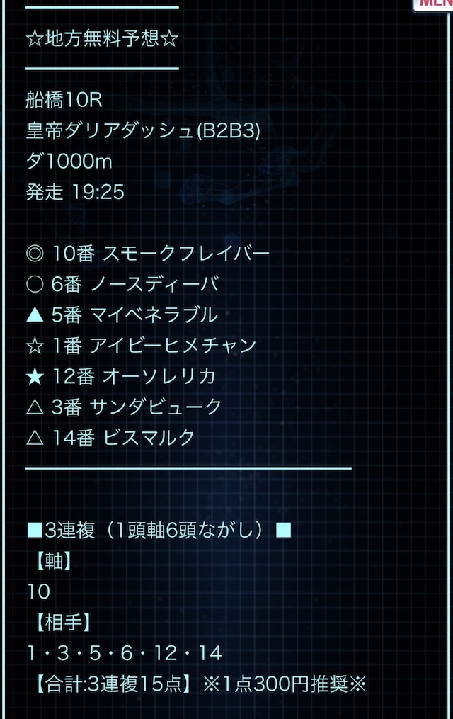 ただ、地方競馬に関する予想がないのは少し残念。