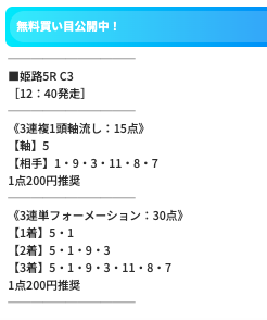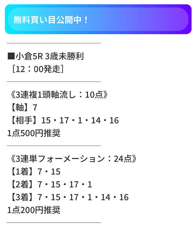 実際に公開された買い目がこちら。