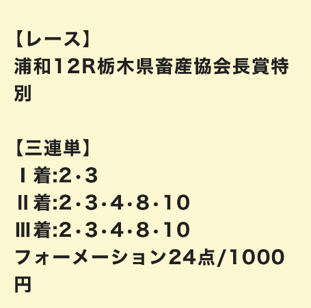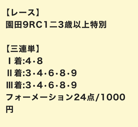 2鞍分の買い目が公開されましたがどちらとも的中。