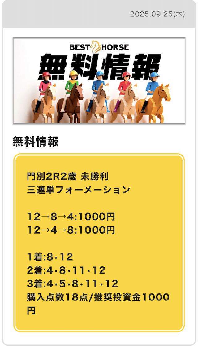 ベストホース | 公式サイトはこちら | 9戦8勝1敗 | +212,820円 | 名古屋 | 競馬関係者×AI |