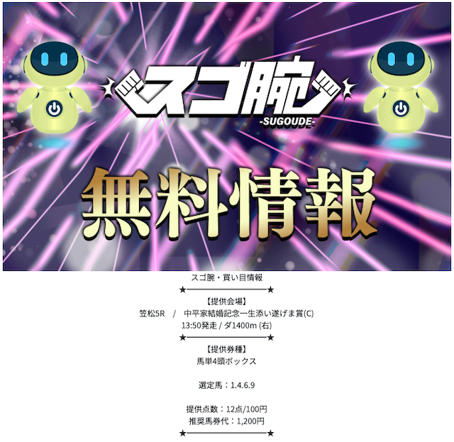 無料予想だけの利用でも十分な利益を獲得できるサイト。