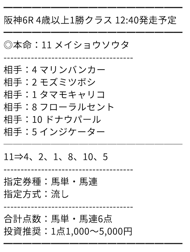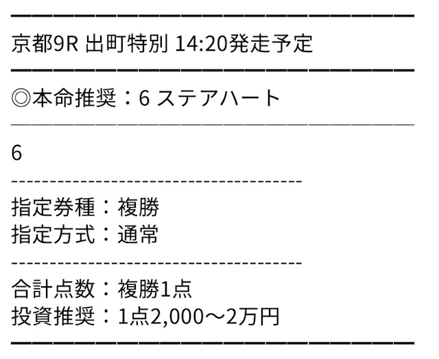 | 馬券代1点 | 1,000円 |