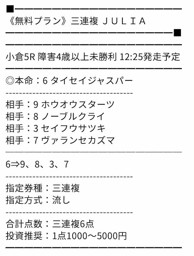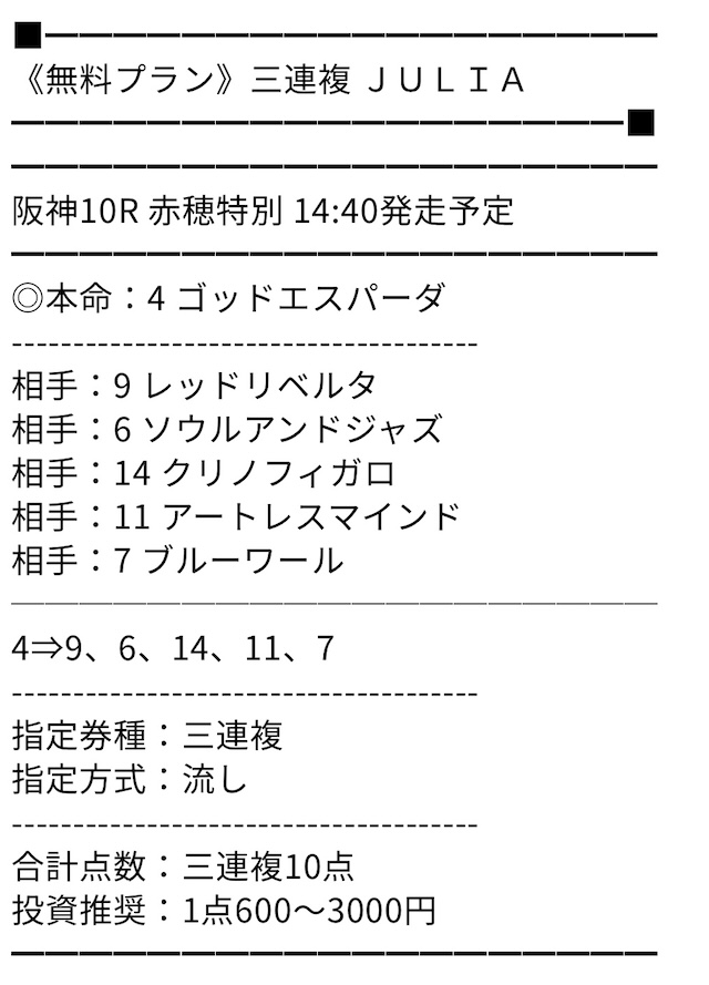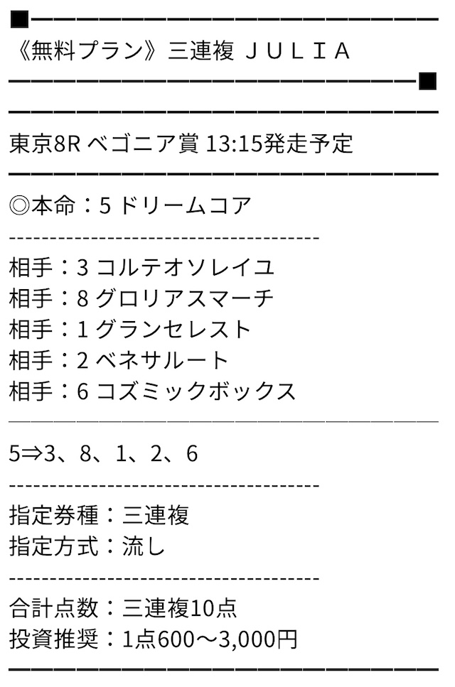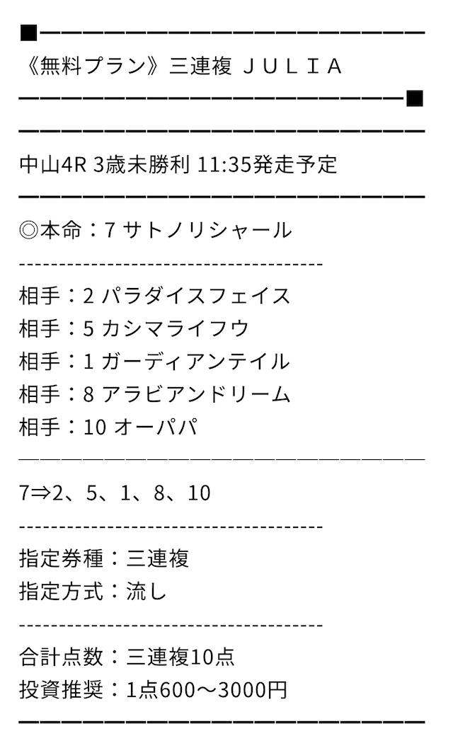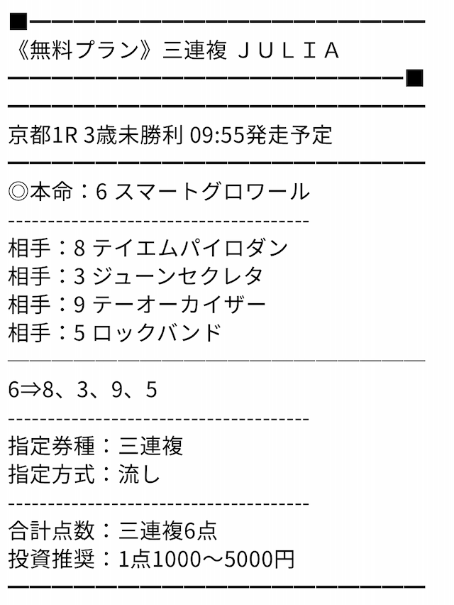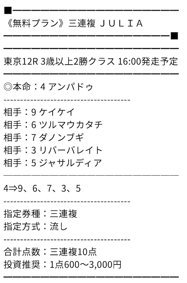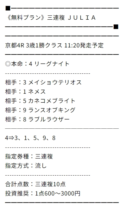 無料プランも出ているのですがこれがまた的中率が良い。おすすめです!