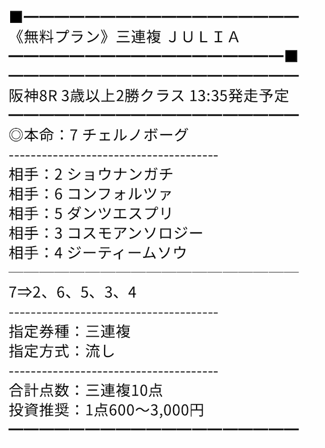 これほどの馬券を提供していただけるとは、さすがPTプランの最高峰だと改めて実感しました。