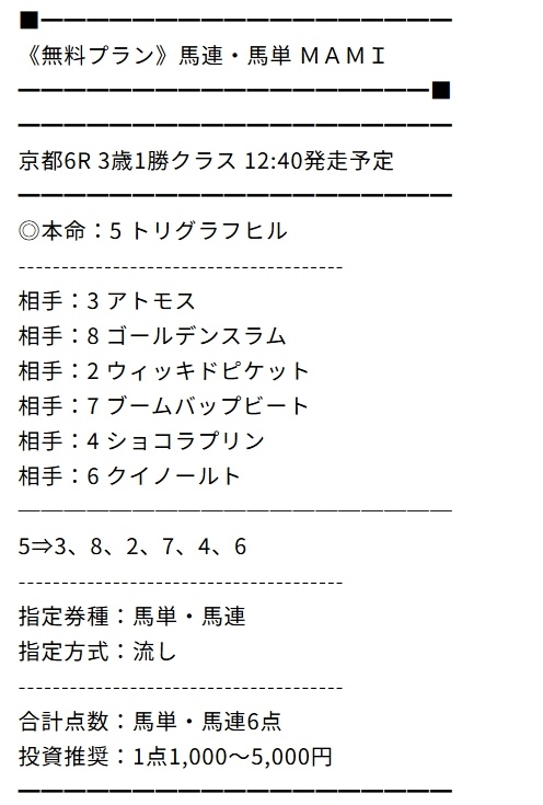初投稿です。先日、マミさんの無料情報で1日合計20万程勝ちました。