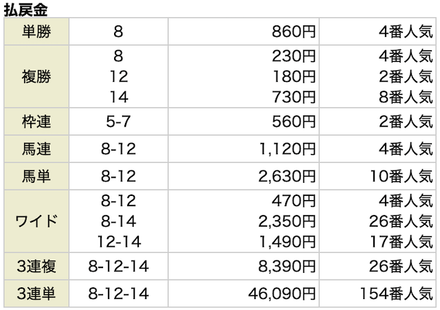 ただ、3着に入った馬はいずれも買い目には含めており、個人的には惜しい結果だと思います。