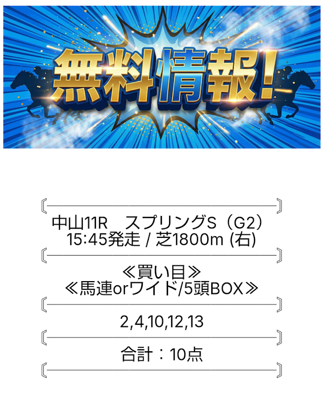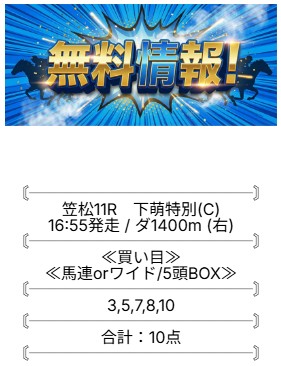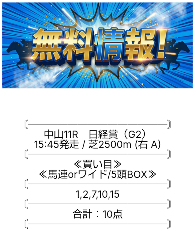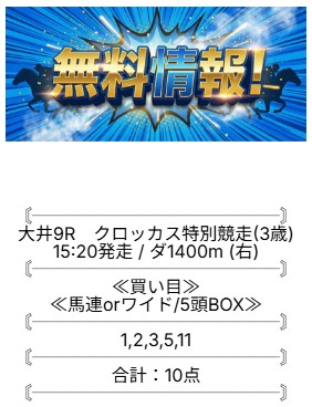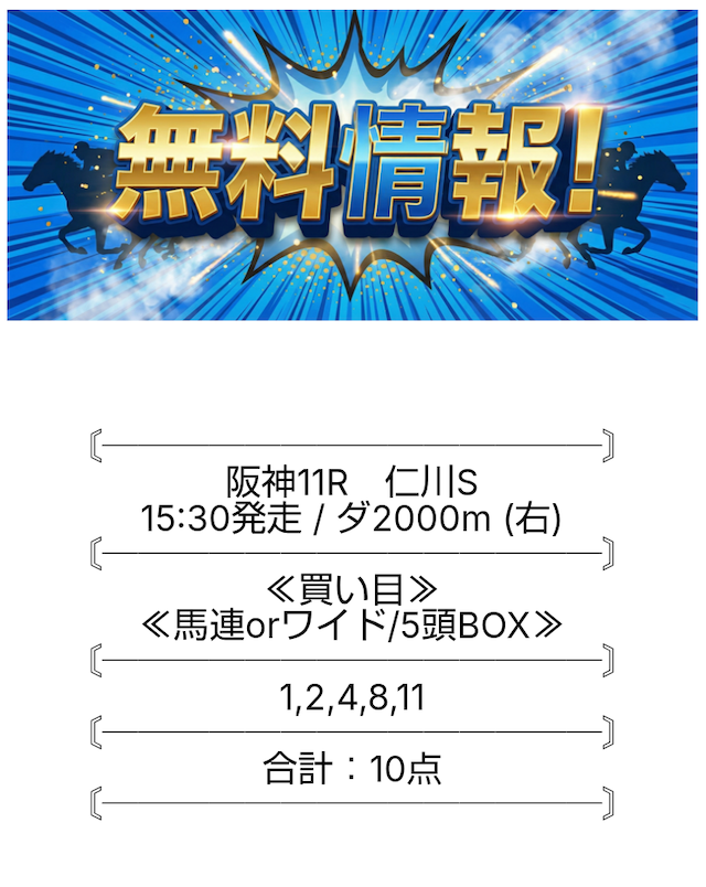 普段なら無視するような馬がリストに入ってるのが最高。それでいて人気馬の取捨選択も正確だから、無駄な迷いが出ないのがいい。
