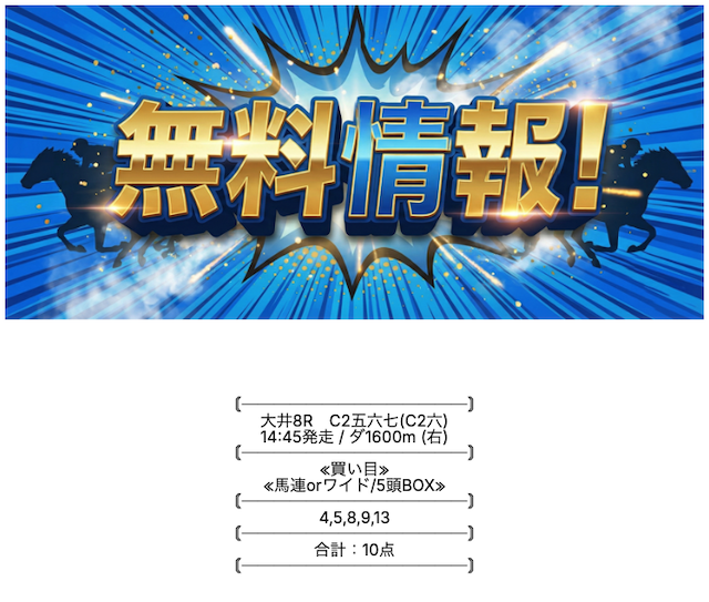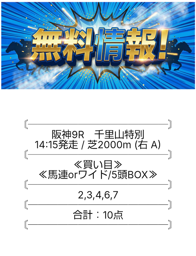 教えてもらった買い目通りに買ったら、2レース目もしっかり当たっちゃいました♪ちゃんとデータ分析して予想してるんだなっていうのが伝わってきて、信頼度アップです!