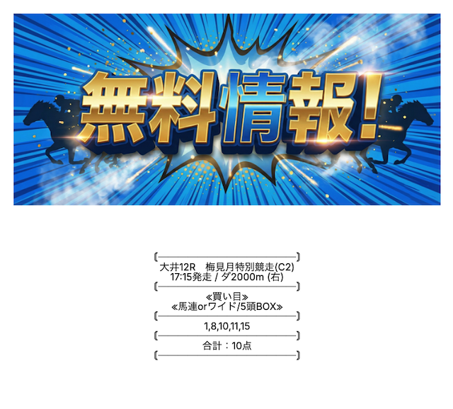 モギトルの無料予想では、ワイドor馬連の予想が公開されるとのことです。