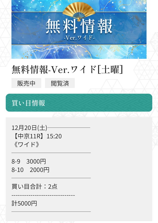 無料予想で十分って思ってたけど、有料予想にも参加して本当に良かった。
