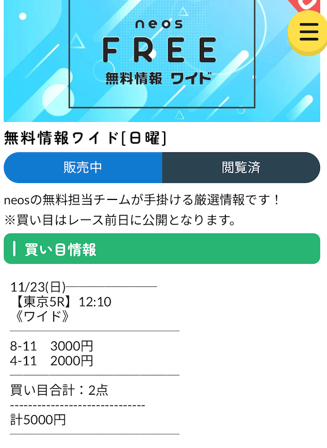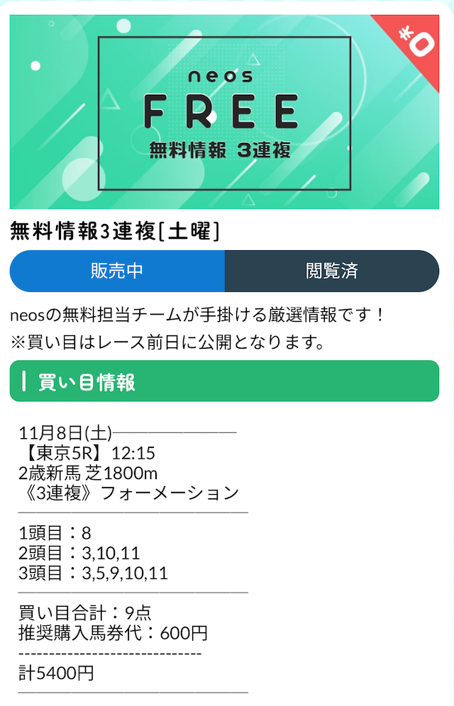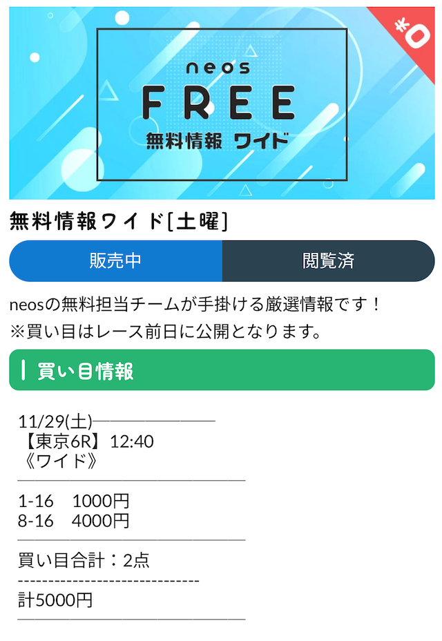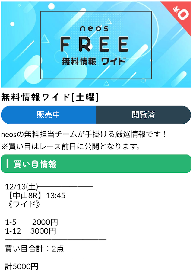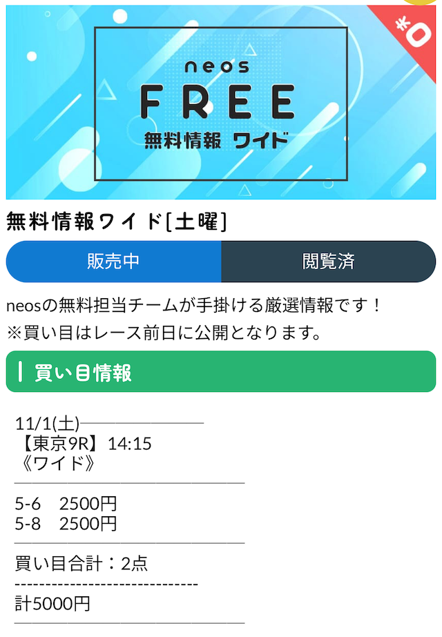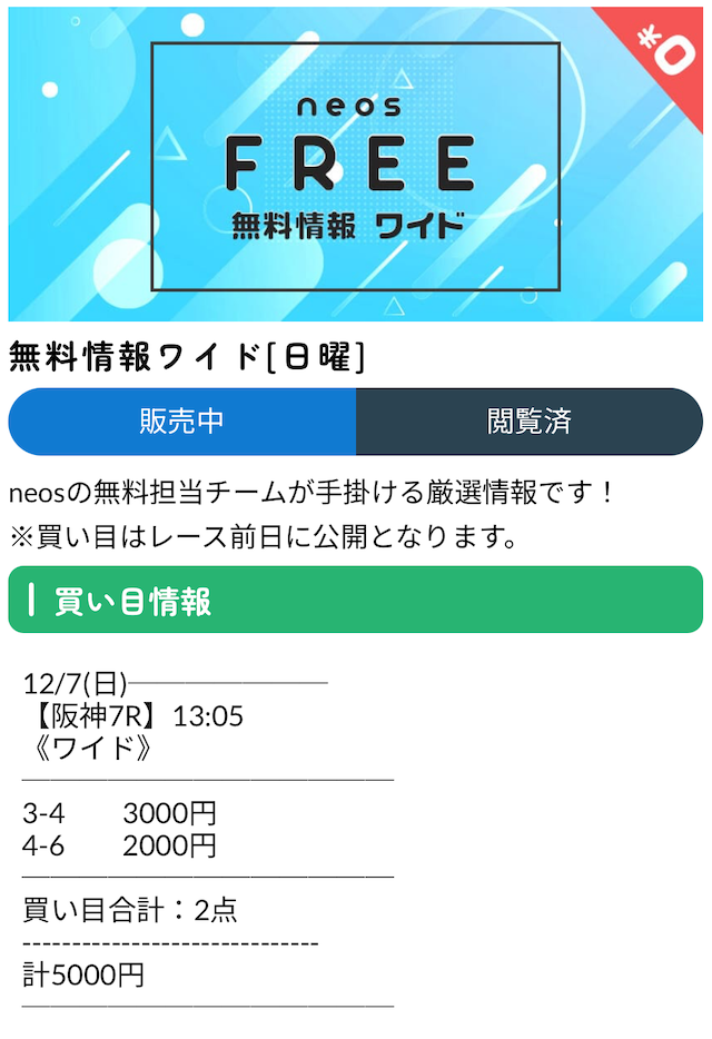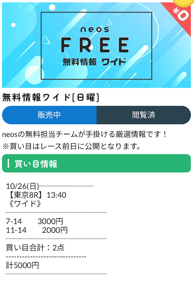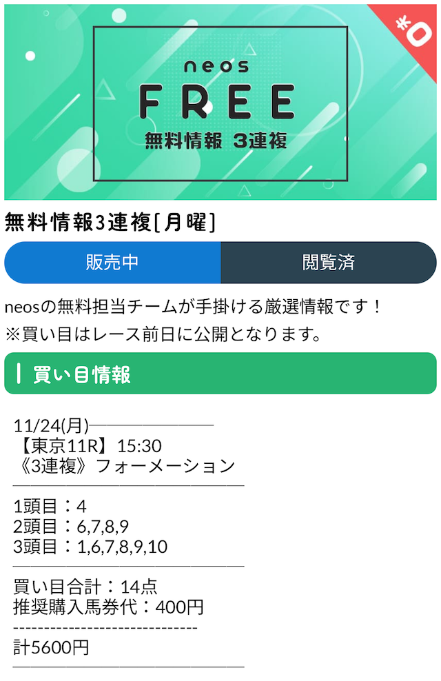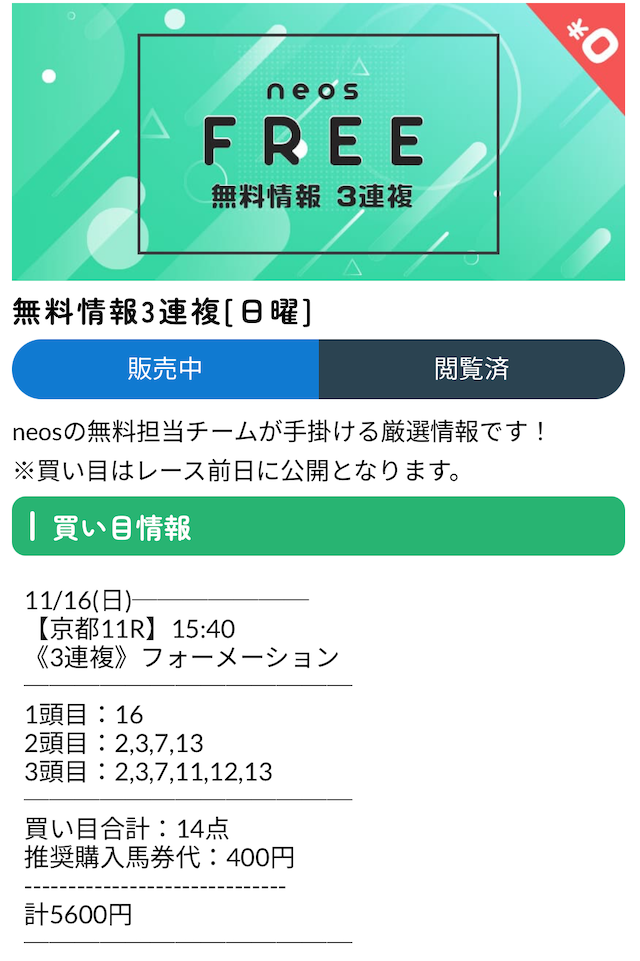 ネオス(neos)の無料予想に参加!馬券を買って検証してみた!