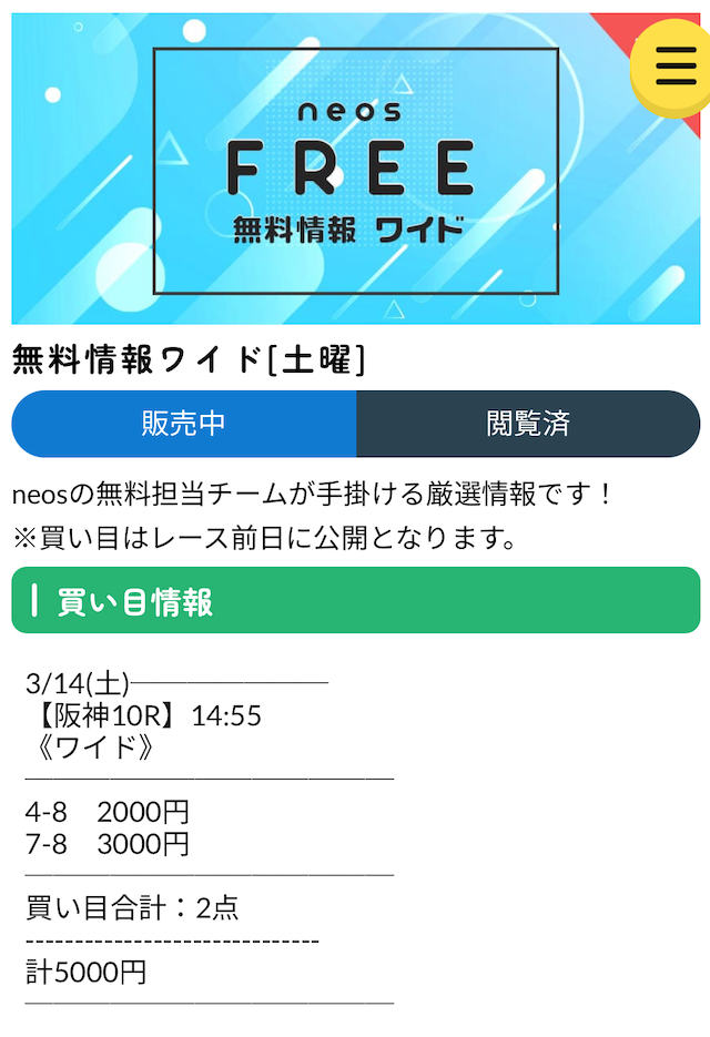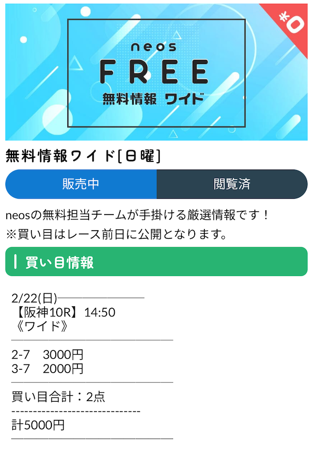ネオス(neos)の有料予想に参加した結果