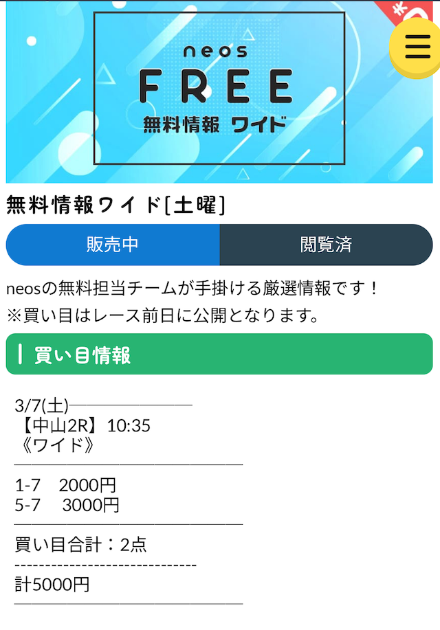 それでは、ネオスの有料予想に実際に参加していきます。