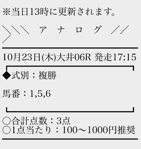 | 累計戦績 | 10戦7勝3敗 | 的中率 | 80% |