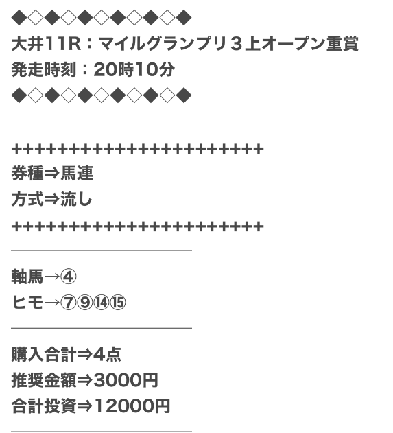 | 累計戦績 | 4戦4勝0敗 | 的中率 | 100% |