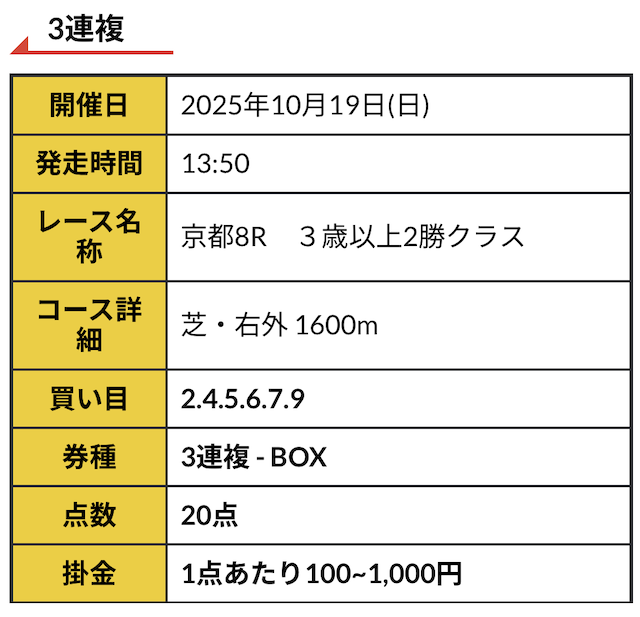 ワイド・馬連・3連複の買い目を公開!