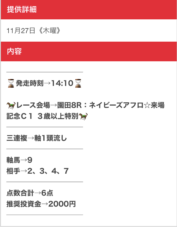 無料と有料の差は提供される予想のクオリティであり、どうしても[お金をかけてる有料予想の方が当たりやすい]傾向が見られます。