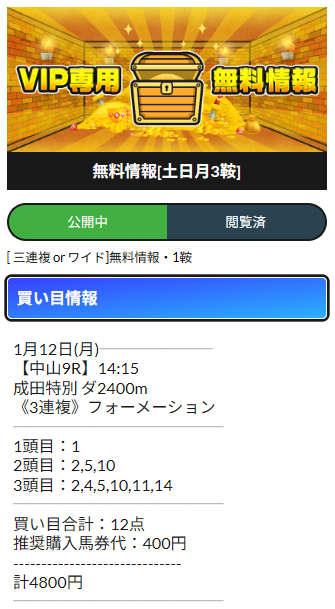 かなり歴史のあるサイトのようですね。やはりそれだけ公開している予想が精度の高いってことですね。実際に使ってみて分かります。まじでオススメです。