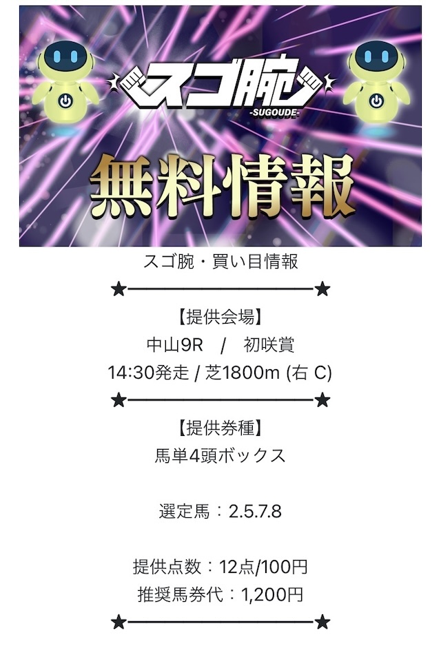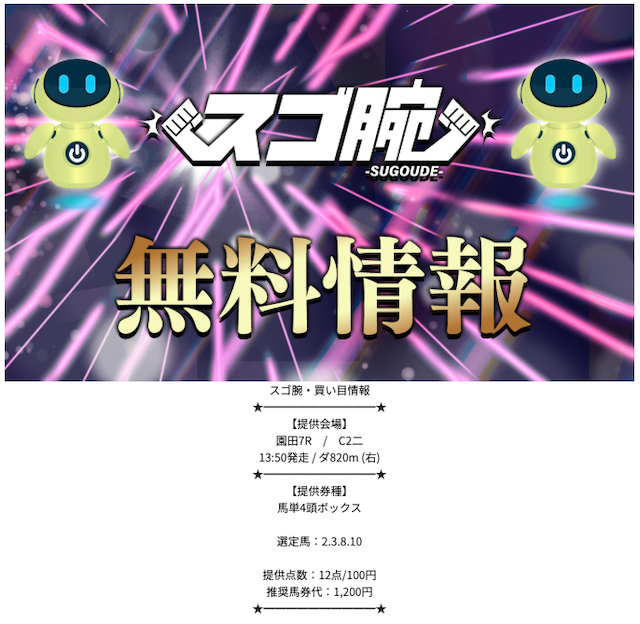 スゴ腕を利用する最大のメリットはやはり無料予想の精度がズバ抜けている点でしょう。