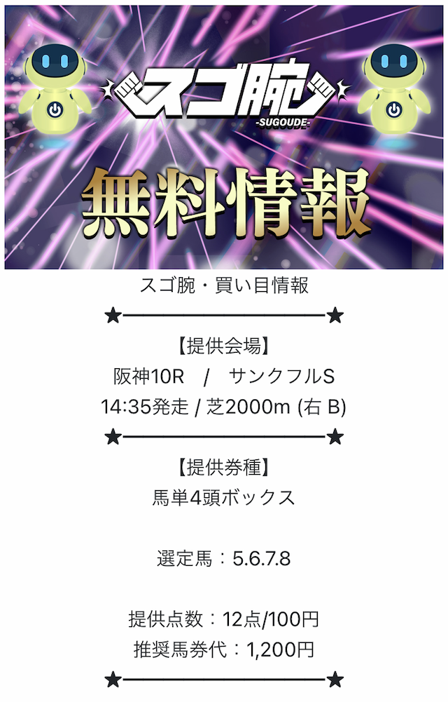 スゴ腕は馬単4頭ボックスの買い目を公開しました。