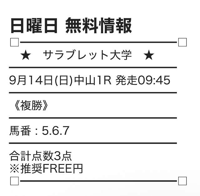 無料予想は3点の予想だからとにかく使い勝手が良い。
