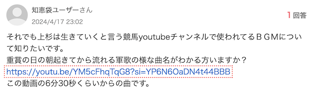 動画内で使われているBGMについて気になるユーザーの方がいたので、競馬ビビットが調査を進めましたが・・・