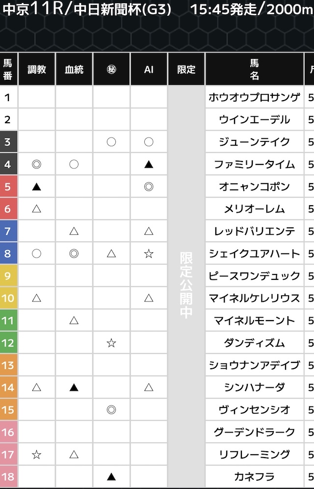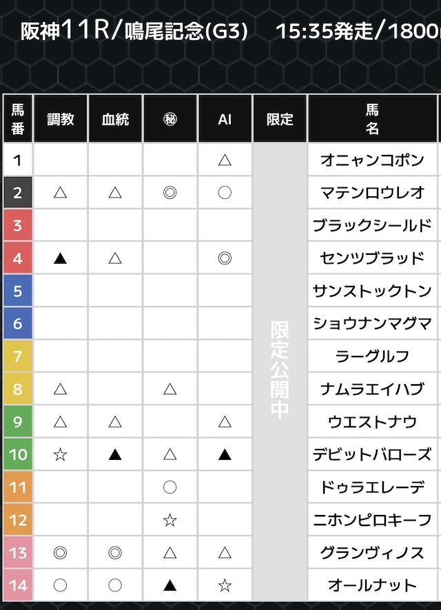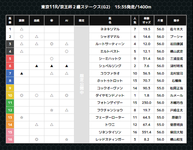無料予想では、複数の予想印を公開。
