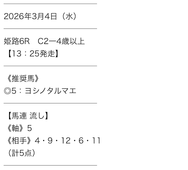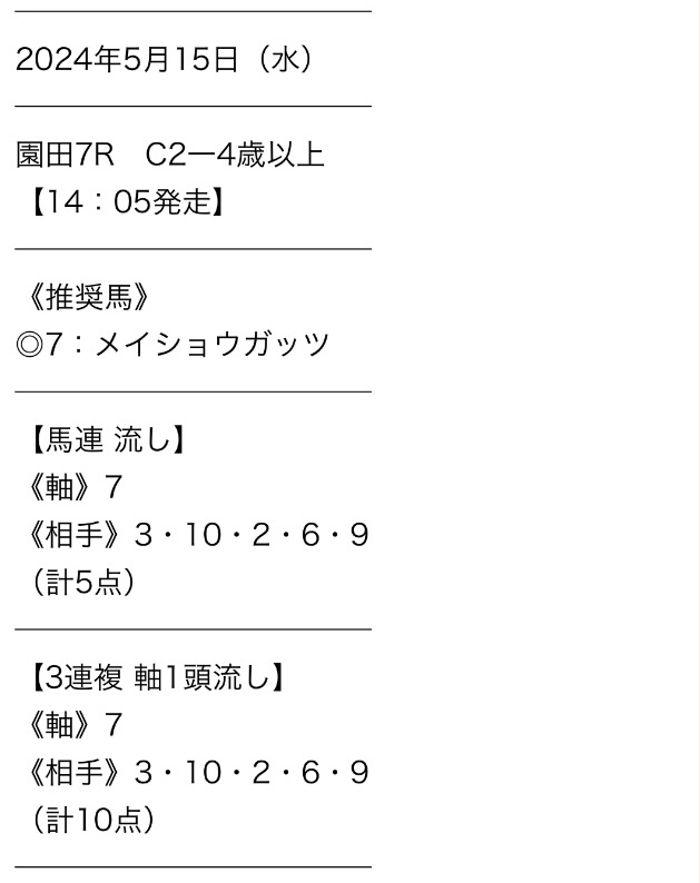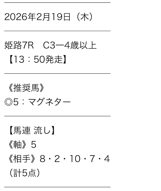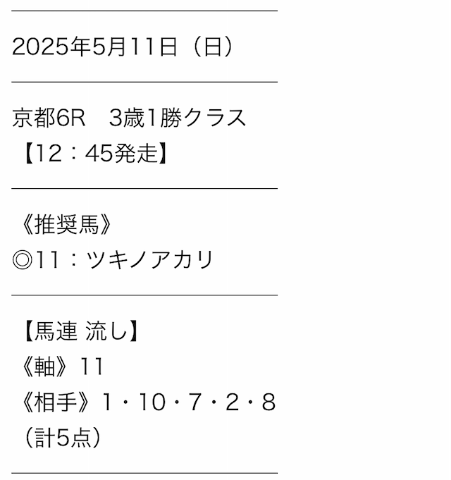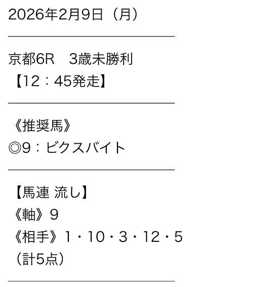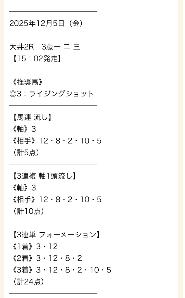 | 予想の確認方法 | 会員ページの[情報公開] |