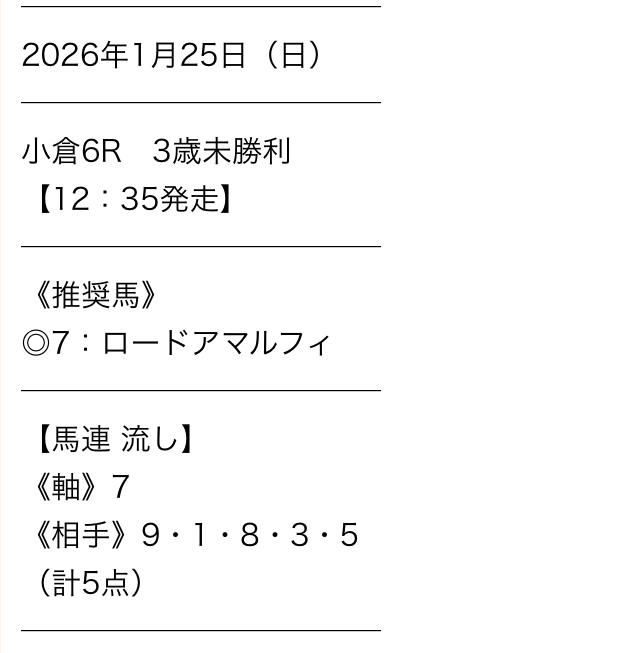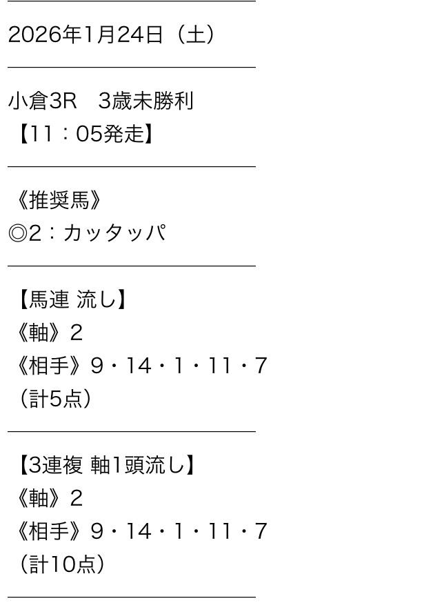 | 馬券代1点 | 1,000円 |