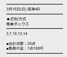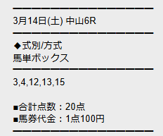 買い目は3連単フォーメーションとなっており、点数は脅威の6点。