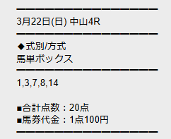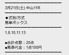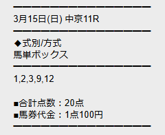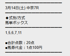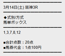 穴馬を含めた馬単ボックスの予想で、回収率は約700%と圧倒的な数値です。